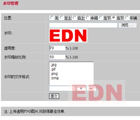 解決了原來水印大小的控制問題,水印大小可以做到取上傳圖片的大小成比例縮放,并在上傳圖片顯示縮略圖時,也可成比例顯示水印效果。
