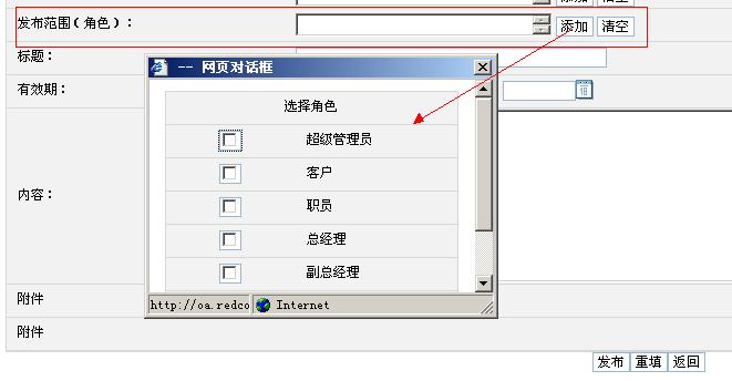 選擇了部門(mén)后,點(diǎn)擊關(guān)閉,關(guān)閉了彈出的窗口,還可以選擇角色如圖: