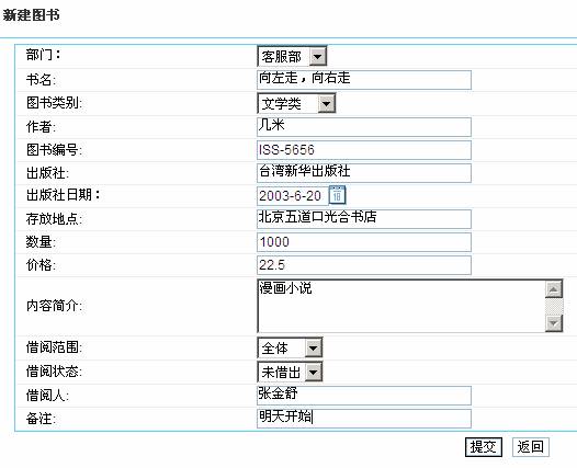 進(jìn)入上圖是根據(jù)提示進(jìn)行添加,提交后跳轉(zhuǎn)到圖四中,可以根據(jù)您的要求,來查詢您想看的書的具體信息,查詢出的的圖示如下(圖六):