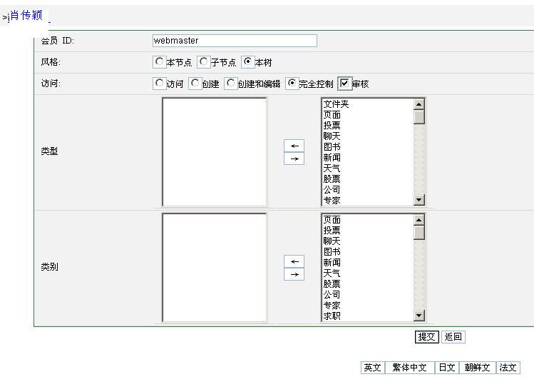 點(diǎn)“創(chuàng)建”,進(jìn)入插入會(huì)員頁(yè)面。首先插入社區(qū)管理員,并設(shè)置其權(quán)限,一般社區(qū)管理員具有最高權(quán)限,可以管理社區(qū)所有的角落。社區(qū)管理員的“會(huì)員ID”一般為“webmaster”。該頁(yè)面有很多被選的信息類型,勾選上則表示該會(huì)員可以創(chuàng)建本類型信息。如下圖所示: