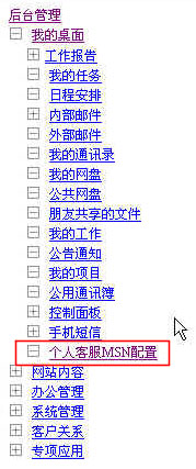 “我的桌面”的最后一個子菜單就是我們剛剛添加的“個人客服MSN配置”。如下圖: