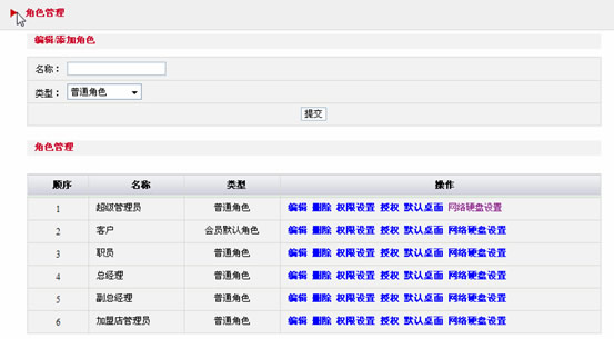 點(diǎn)擊權(quán)限設(shè)置可以對(duì)每個(gè)角色可以管理的菜單進(jìn)行編輯