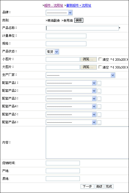 進入商品屬性編輯界面,管理員填寫商品的各類屬性,其中,后面帶有*標識的項目必須填寫。“配套產品”是指與該商品相關的商品,顧客可以在該商品的內容頁的下方看到這些相關商品。