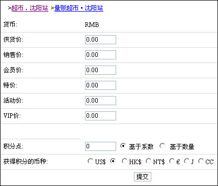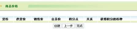 進入商品價格頁面,該頁面是商品價格屬性列表,點“創(chuàng)建”,管理員可以在此創(chuàng)建一個新的商品價格。