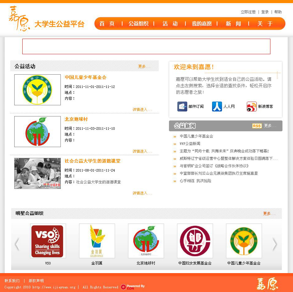 由我公司設(shè)計(jì)與制作的“嘉愿大學(xué)生公益平臺(tái)”網(wǎng)站正式上線(xiàn);
