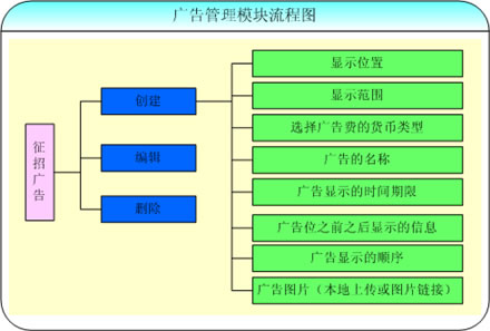 廣告管理模塊可以控制廣告的顯示時(shí)間、顯示位置、顯示范圍;可以自定義廣告的風(fēng)格,選擇繳納廣告費(fèi)所用的貨幣,支持美元、人民幣、港幣等多種貨幣類型;自定義廣告每千次顯示的價(jià)格;能夠指定點(diǎn)擊廣告后轉(zhuǎn)到的鏈接;能夠自動(dòng)默認(rèn)排序,或按客戶需求排序,方便靈活;能從本地上傳廣告圖片、或指定圖片的鏈接,選擇方式靈活;可以對(duì)廣告信息隨時(shí)進(jìn)行編輯、修改和刪除操作,簡(jiǎn)單實(shí)用;