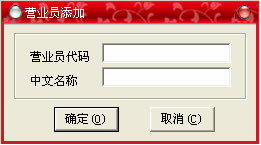 此菜單的功能是:可以將所在場(chǎng)所的營(yíng)業(yè)員的所有信息在此窗口添加,以便在前臺(tái)結(jié)帳時(shí)可以通過(guò)選擇營(yíng)業(yè)員來(lái)記錄各個(gè)營(yíng)業(yè)員的銷售額