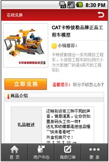 會員可使用所得積分換取禮品或消費卷,會員可根據(jù)自己消費所得積分換取不同禮品,實現(xiàn)禮品的在線兌換功能。管理員可隨時在后臺查看所有會員充值、消費、禮品交換歷史記錄。
