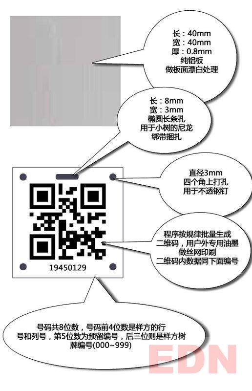 腐蝕油印工藝,二維碼在上方,下方加編號,編號及二維碼為黑色、四角打釘孔