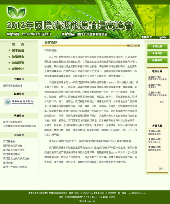 由我公司設(shè)計與制作的“2012年國際清潔能源論壇高峰會”網(wǎng)站正式上線; 網(wǎng)址:http://www.mifce.org/