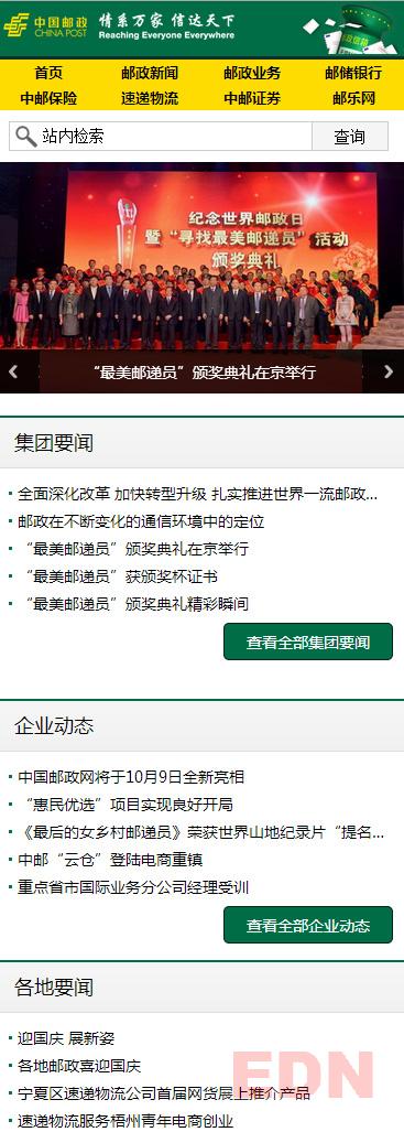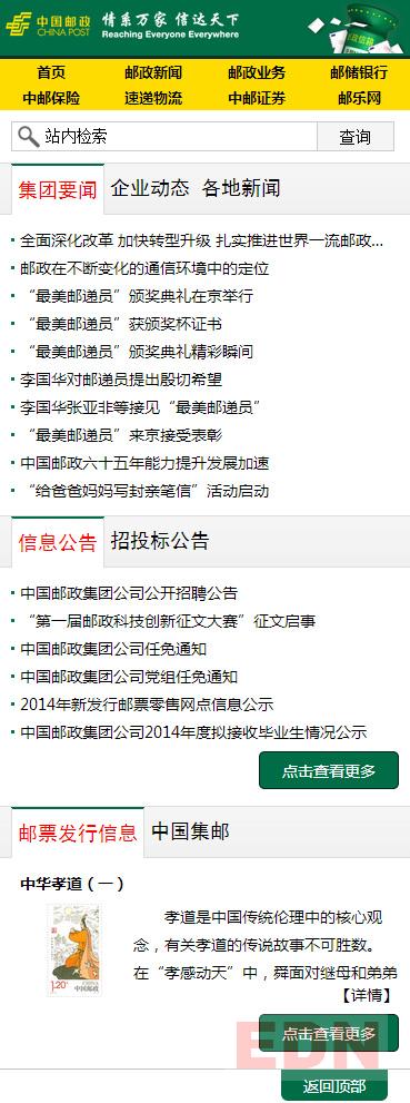 集團(tuán)要聞、企業(yè)動態(tài)、各地新聞、信息公告、招投標(biāo)公告、郵票發(fā)行信息、中國集郵等欄目,如下圖所示: