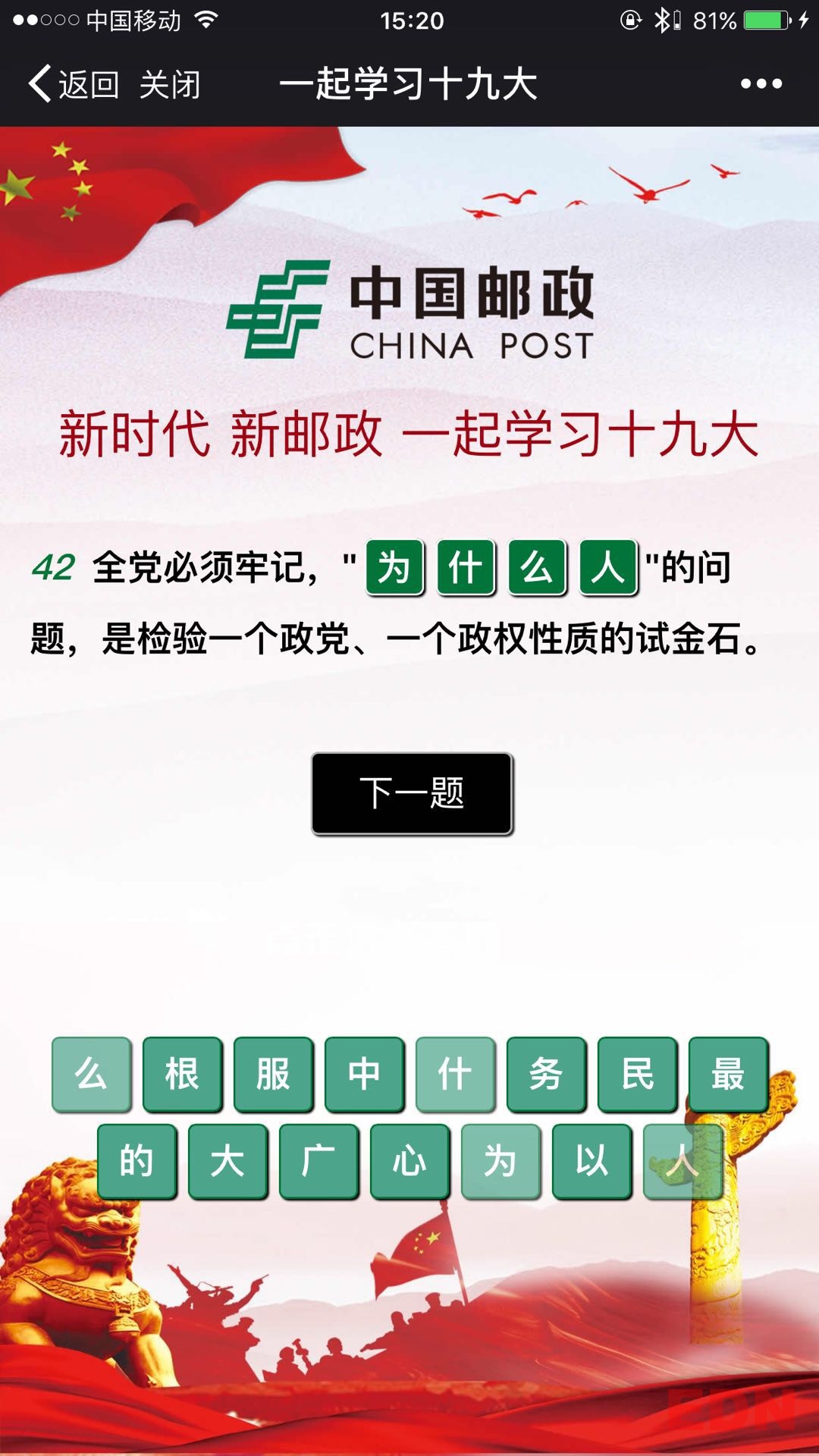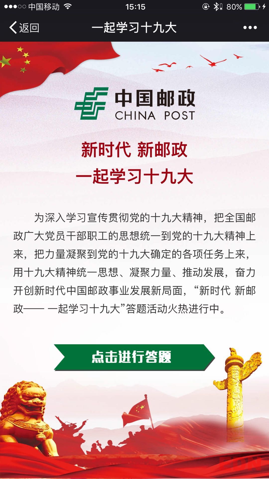 - 由我公司制作開發(fā)新時(shí)代 新郵政 一起學(xué)習(xí)十九大答題活動(dòng)火熱進(jìn)行中!