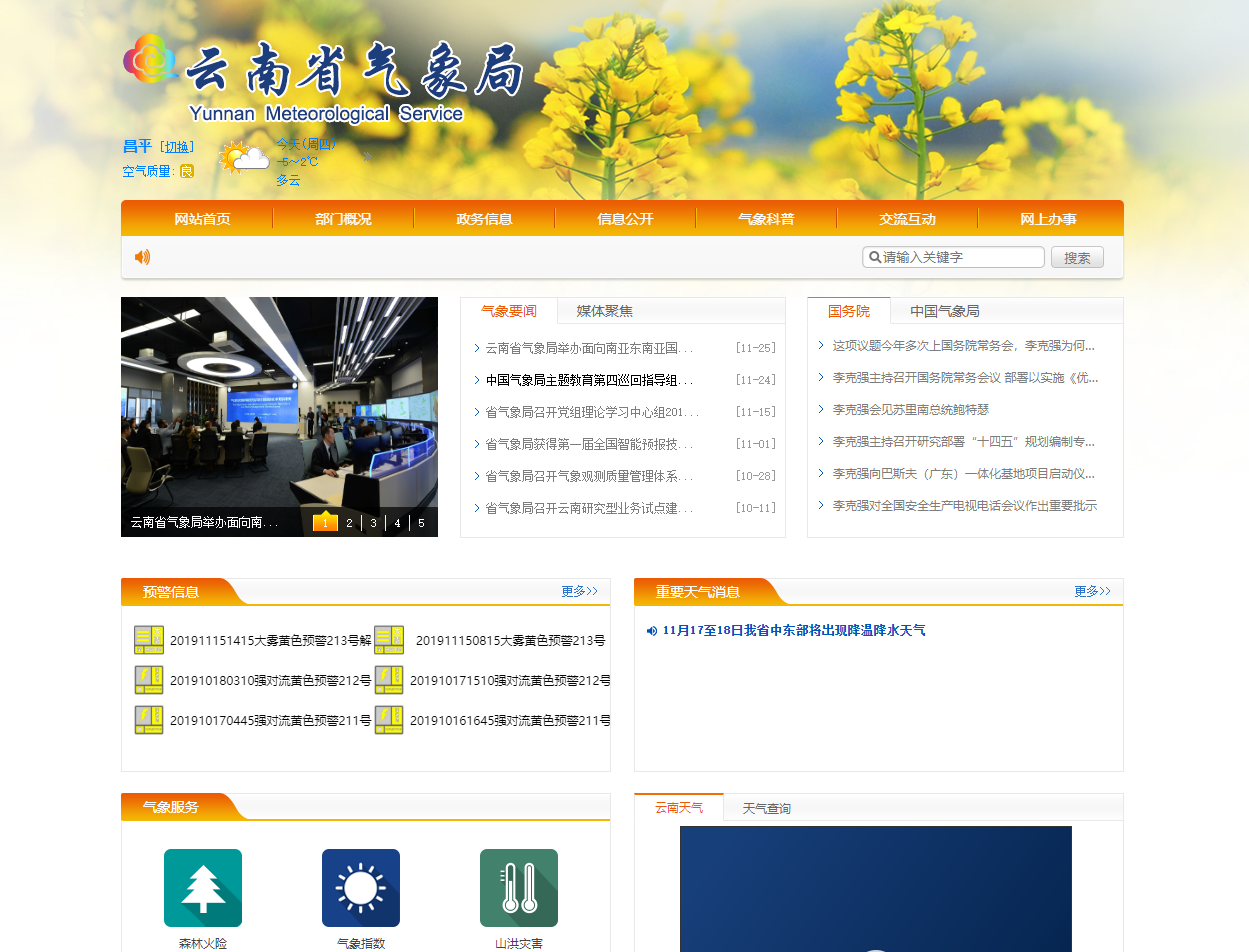 近期由本公司設(shè)計(jì)搭建制作的云南省氣象局網(wǎng)站正式上線