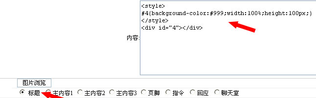 完成了總的CSS定義后,我分別建立了5個段落,分別放入內(nèi)容1\內(nèi)容2\內(nèi)容3\標題\頁腳內(nèi),如下圖: