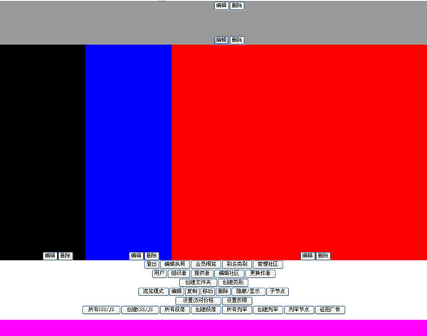 我們在總的CSS中定義好節(jié)點的結(jié)構(gòu)后,我們要查看一下我們定義的結(jié)構(gòu)是否合適。所以我們要在內(nèi)容1\內(nèi)容2\內(nèi)容3\標題\頁腳等區(qū)塊定義不同的背景色,看看頁面布局是不是定義好了。就是建立5個段落,分別放在內(nèi)容1\內(nèi)容2\內(nèi)容3\標題\頁腳內(nèi)。