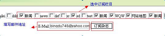 用戶可以通過(guò)提交郵箱地址來(lái)訂閱所需信息的郵件,如圖選中所要訂閱的欄目,填寫郵件地址,點(diǎn)擊訂閱雜志按鈕即可;