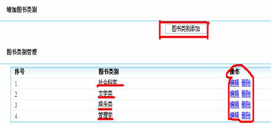 如上圖我們先來創(chuàng)建一個(gè)圖書類別吧,點(diǎn)擊“圖書類別添加”進(jìn)入下圖(圖三):