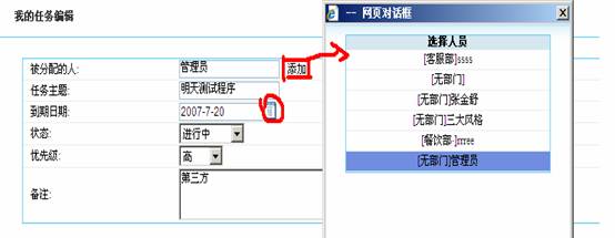 看到圖三后,就可以添加任務(wù)了,在被分配的人后面的添加是選擇你安排的任務(wù),是分配給那個(gè)用戶,添加完成后,就跳轉(zhuǎn)到了圖二頁面。