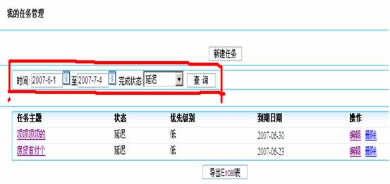 查詢的條件是時(shí)間段和任務(wù)的完成狀態(tài),點(diǎn)擊查詢即可。