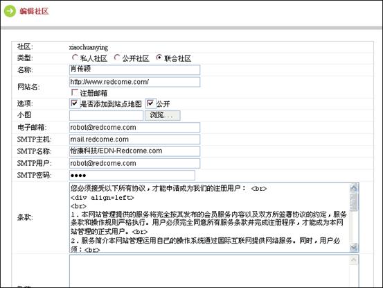 點(diǎn)“創(chuàng)建”,進(jìn)入編輯社區(qū)頁(yè)面,在這里編輯新社區(qū)。依次填寫好需要填的內(nèi)容。