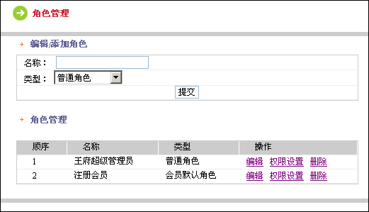 在編輯/添加角色中,添加角色的名稱并選擇角色的類型,點(diǎn)擊提交按鈕。