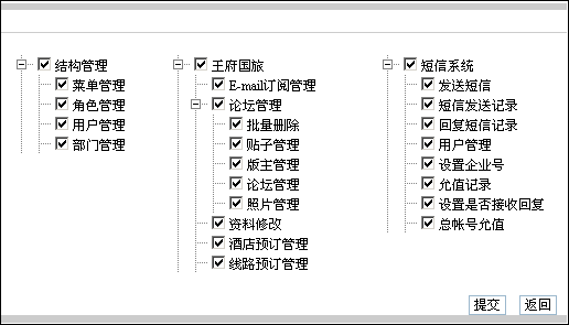 對(duì)角色進(jìn)行授權(quán),點(diǎn)擊權(quán)限設(shè)置,在可以允許該用戶對(duì)其內(nèi)容進(jìn)行操作的項(xiàng)目上打勾,點(diǎn)擊提交完成。