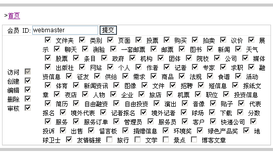 3、填入會員ID,在可以允許該用戶對其內(nèi)容進(jìn)行操作的項目上打勾,點(diǎn)擊提交完成。