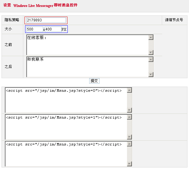 <script src="/jsp/im/Msns.jsp?style=0"></script>是以MSN圖標的形式顯示。