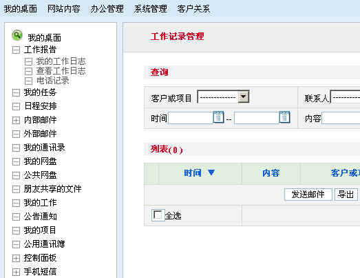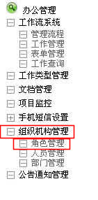 菜單建好后,點擊辦公管理,進入辦公管理頁面,點擊組織機構管理菜單,打開下拉菜單,如下圖: