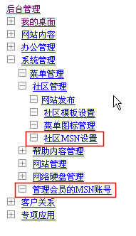 進入系統(tǒng)管理下的社區(qū)管理下的“社區(qū)MSN設置”,如下圖: