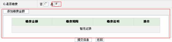 點(diǎn)擊添加繳費(fèi)金額,會(huì)彈出一個(gè)對(duì)話框,讓我們填寫繳費(fèi)的金額、繳費(fèi)期限和繳費(fèi)說明。