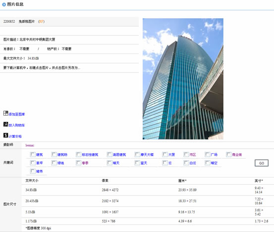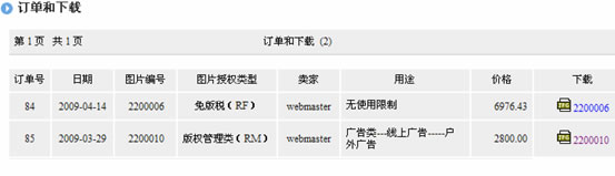 上圖為顯示所購買圖片的各種信息并提供該圖片的下載,如果購買授權(quán)類型為RM類型的圖片則下載該圖片的原始圖片,如為RF的圖片則下載的是該會員在計算圖片價格時所選擇的圖片尺寸大小相對應(yīng)的圖片。