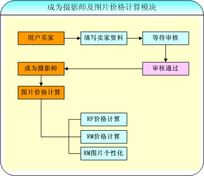 商業(yè)圖片站-成為攝影師及圖片價(jià)格計(jì)算模塊是實(shí)現(xiàn)用戶用來(lái)申請(qǐng)從買家成為賣家以及賣家可以根據(jù)圖片類型的不同(RF圖片、RM圖片)來(lái)計(jì)算圖片價(jià)格的功能。