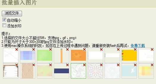 如果上面選擇了加水印功能,則會在每張小圖上加入水印,當(dāng)然在站點(diǎn)管理中應(yīng)事先設(shè)置了好水印;