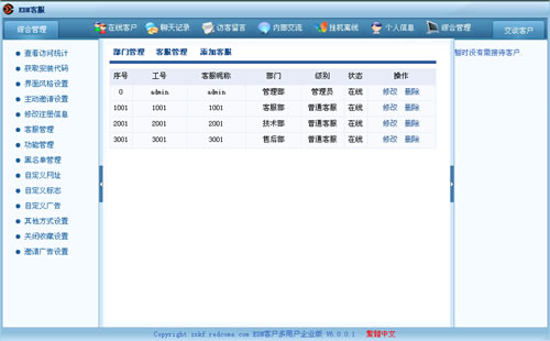 網(wǎng)頁(yè)對(duì)話:對(duì)話兩端完全基于WEB形式實(shí)現(xiàn),極大地方便了客戶的使用,無(wú)論是訪客,或是網(wǎng)站客服,都無(wú)需安裝任何軟件,讓瀏覽站點(diǎn)的訪客能輕松咨詢到網(wǎng)站銷售客服人員。