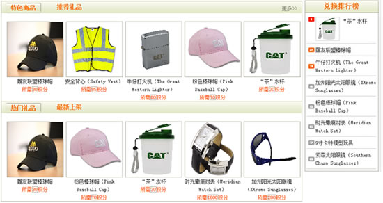 前臺(tái)用戶在“積分商城”下可查看所有積分商品,展示的商品可包括:特色商品、推薦禮品、熱門(mén)禮品、最新上架、兌換排行榜。