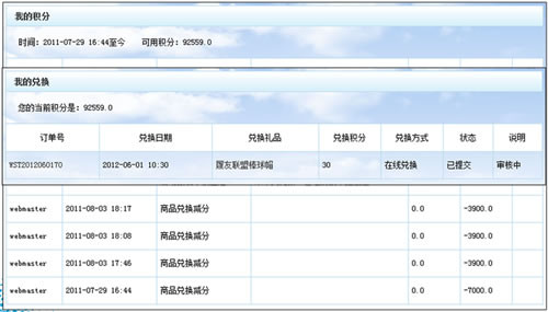 管理員可以后臺(tái)查看所有注冊(cè)會(huì)員積分,并替會(huì)員兌換商品。