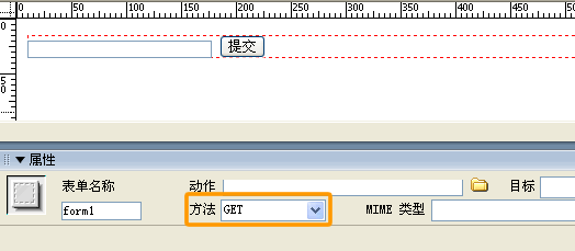 在Dreamweaver中新建文檔,插入表單,切忌要將表單的提交方式設(shè)為“get”;