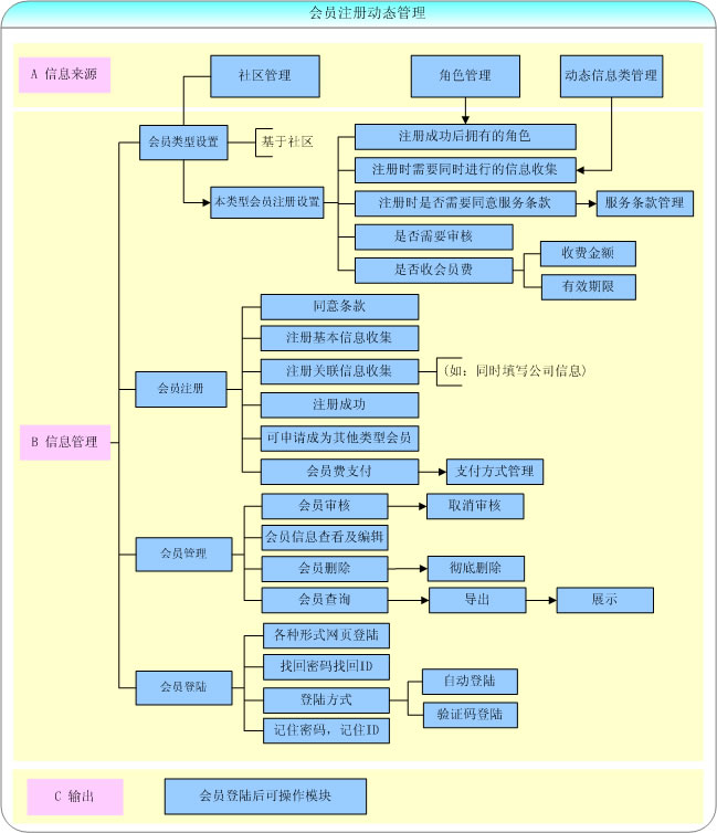 此功能模塊,可實(shí)現(xiàn)系統(tǒng)可注冊(cè)會(huì)員類型的預(yù)設(shè),會(huì)員注冊(cè)時(shí)各種選項(xiàng)的動(dòng)態(tài)設(shè)置,會(huì)員費(fèi)支付及支付選項(xiàng)控制,會(huì)員的審核,編輯刪除,會(huì)員各種形式的登陸及登陸后相關(guān)功能引導(dǎo)。