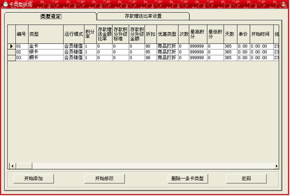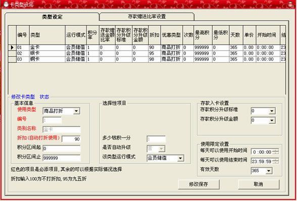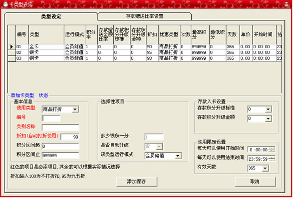 此菜單的功能是:客戶所需要使用的各種卡的類型都在此窗口中增加。