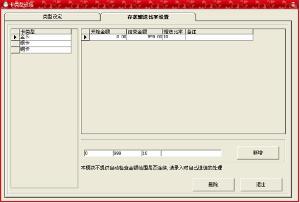 存款贈(zèng)送比率設(shè)置: