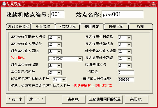 “使用設(shè)定”選項(xiàng),此窗口主要是根據(jù)實(shí)際使用情況對(duì)各種選項(xiàng)進(jìn)行選擇,主要是針對(duì)在卡前臺(tái)操作時(shí)的一些設(shè)置