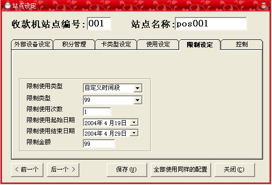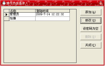 此菜單的功能是:用來(lái)設(shè)置每個(gè)站點(diǎn)的收款員的信息,不同的收款員,不同的密碼,在前臺(tái)收款,各自使用各自的密碼登陸收款,可以通過(guò)“收款員報(bào)表”來(lái)查詢每個(gè)人的收款情況。