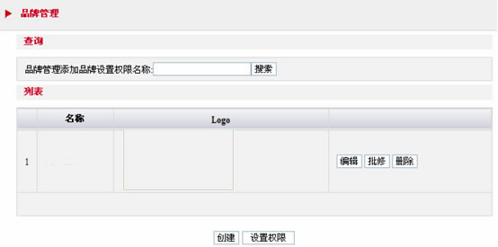 上圖是添加商品的品牌包括對(duì)品牌名稱(chēng)的搜索顯示,對(duì)品牌的修改,品牌價(jià)格的批量修改,刪除,創(chuàng)建一個(gè)品牌以及對(duì)這個(gè)品牌設(shè)置用戶(hù)的管理權(quán)限。