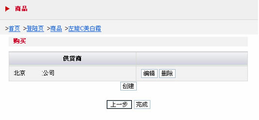 這個(gè)頁(yè)面是添加商品的供貨商列表的頁(yè)面,點(diǎn)擊下面的創(chuàng)建,即使創(chuàng)建一個(gè)商品的供貨商信息,如下圖: